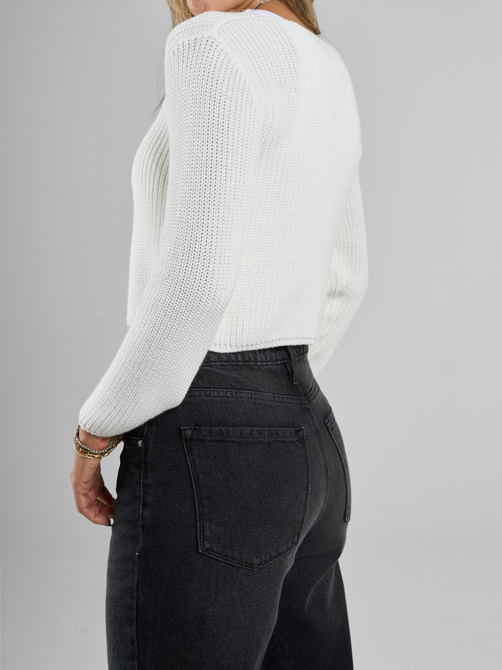 Chaleco tejido acanalado, con broche delantero, tono crudo, silueta amplia