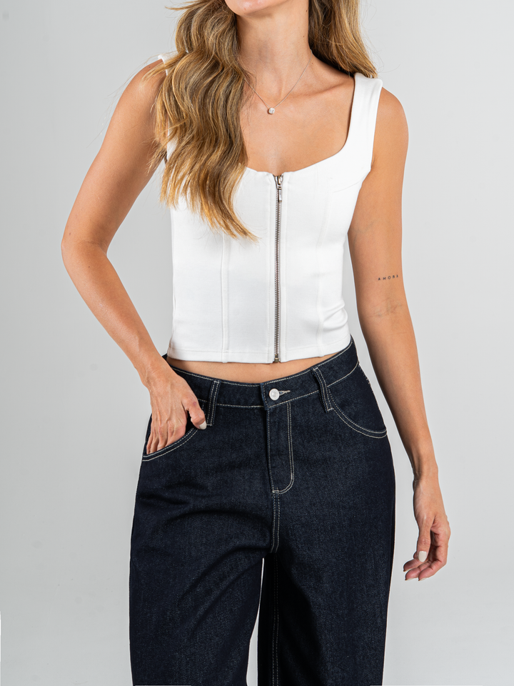 Ref: 0610479 Top manga sisa, cierre frontal, cierre frontal, stretch, tejido de punto, tono crudo.