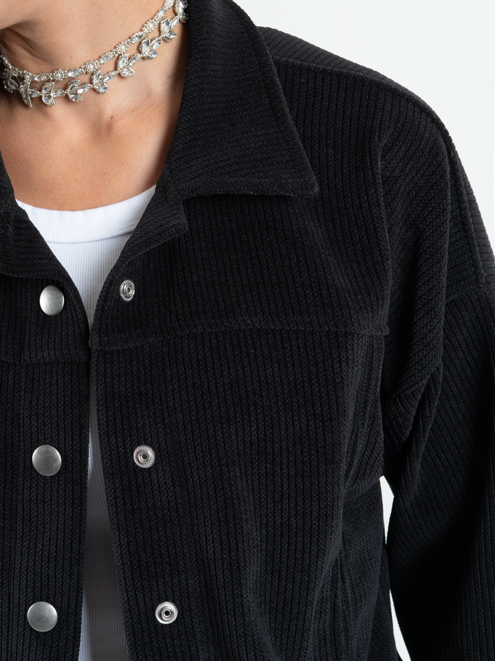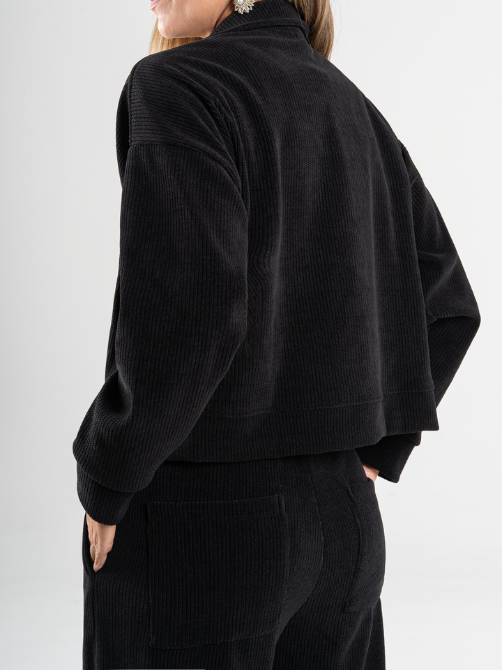 Chaqueta stretch, tejido acanalado, botones delanteros, tono negro