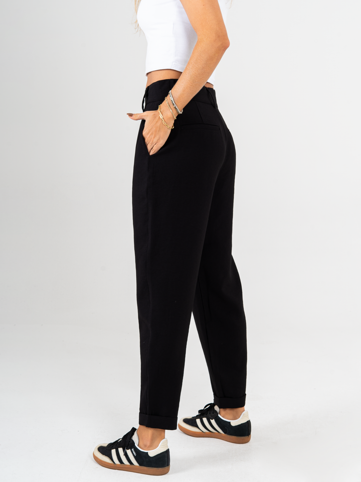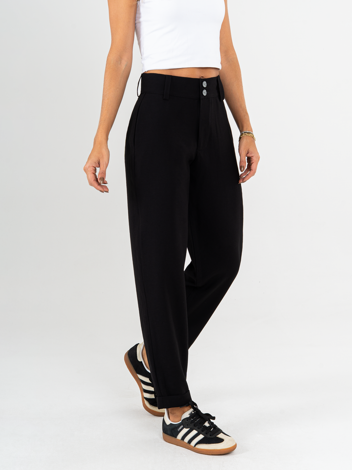 Ref: 0620070 Pantalón slouchy, sin prense, tejido plano liviano, tiro alto, tono negro.