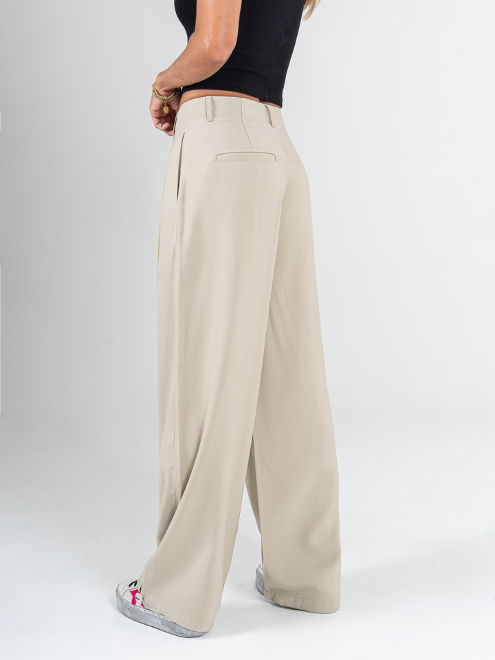 Ref: 0620115 Pantalón wide leg, tejido plano liviano, tiro alto, ajustador en bota, tono verde