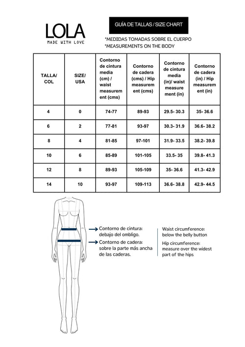 | Talla | 4, 6, 8, 10, 12, 14 |