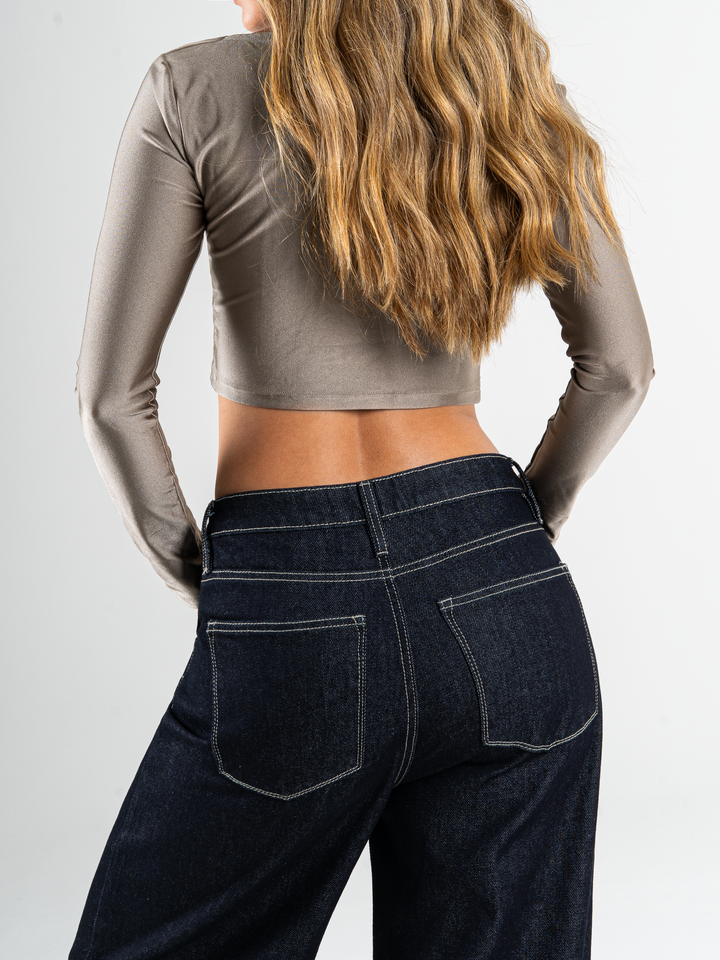 Ref: 0610509 Crop top stretch, manga larga, con escote, tono cafe.