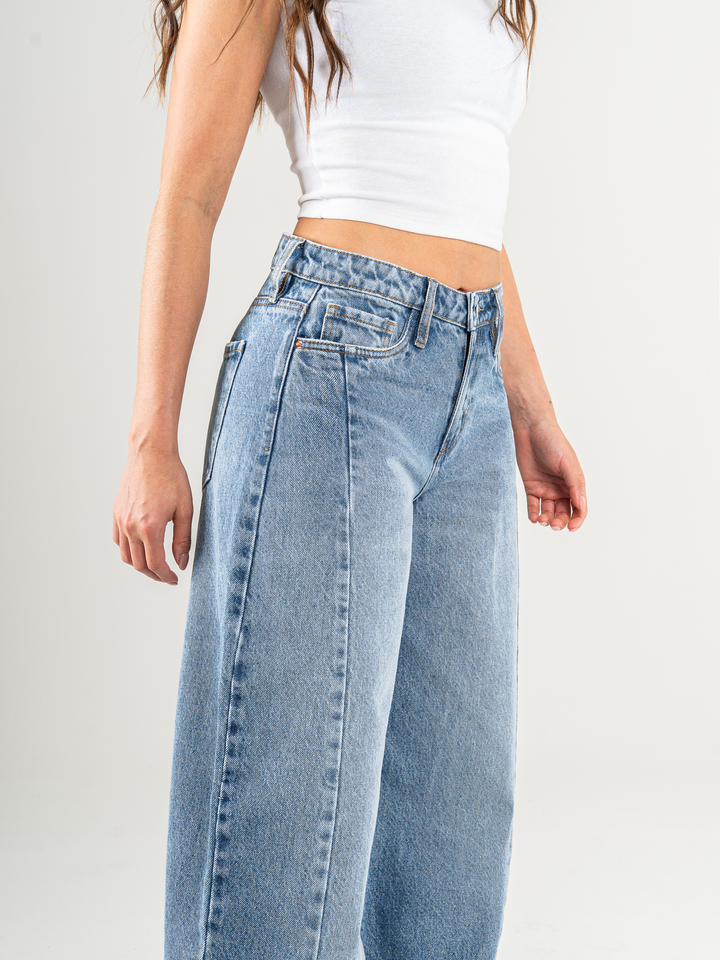 Ref: 065915 Jean wide leg, tiro medio, con cortes, rígido, tono azul medio
