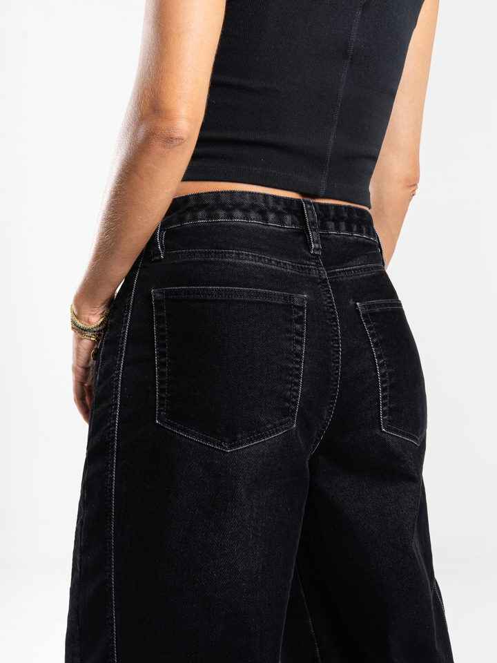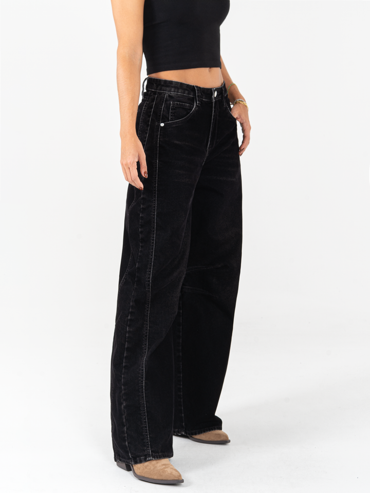 Ref: 065937 Jean wide leg, confort, denim velvet, acabado terciopelo, tiro alto, tono negro