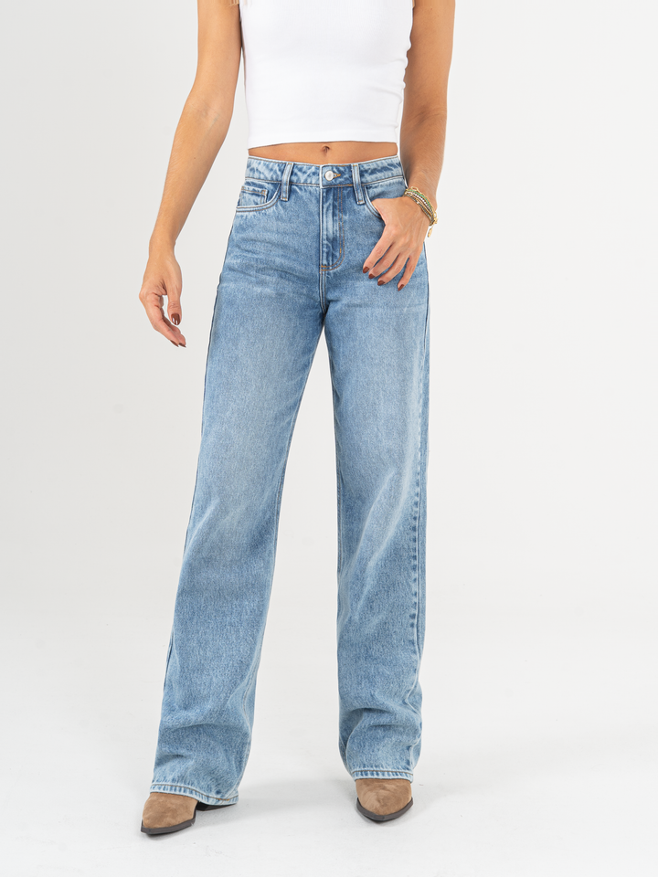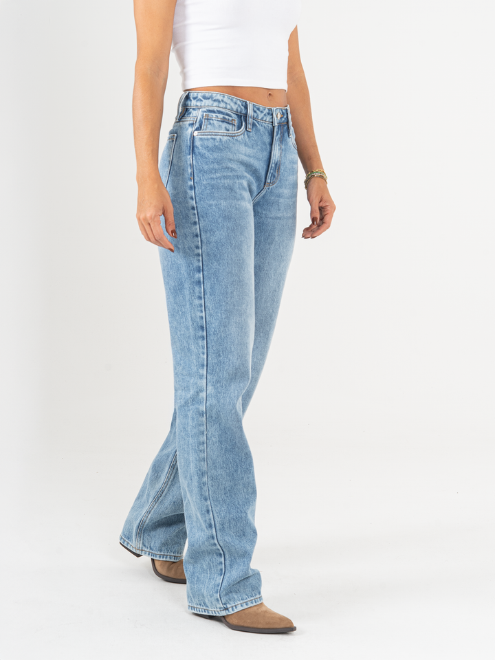 Ref: 066023 Jean straight leg, rígido, tiro medio, tono azul medio.