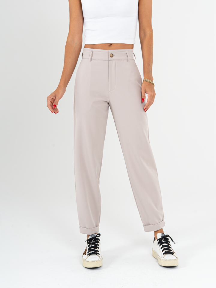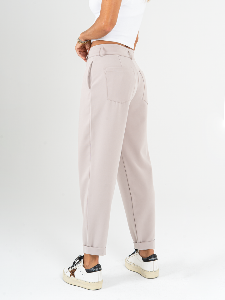 Ref: 069908 Pantalón slouchy, sin prense, tejido plano liviano, stretch, tiro alto, detalle en pretina, tono arena.